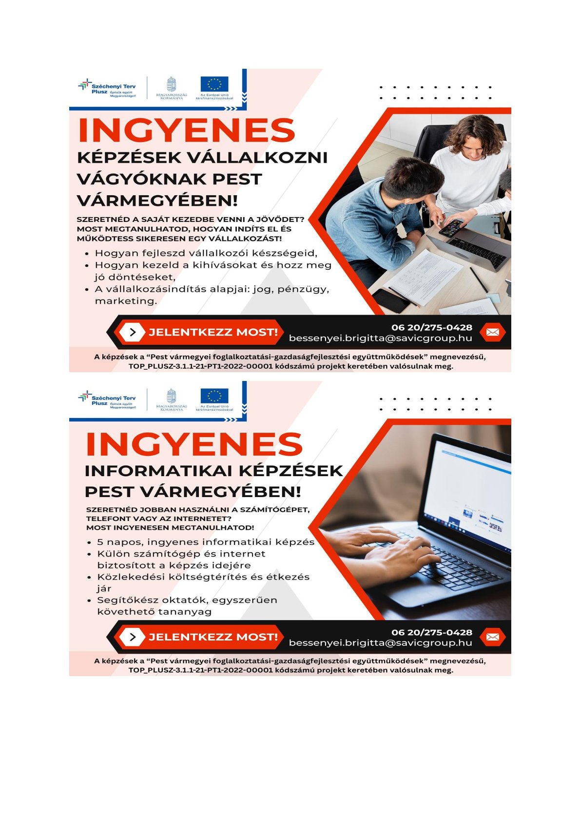 Tájékoztatjuk Önöket, hogy a SAVIC Group Nonprofit Kft. "Munkaerőpiacon önálló jövedelemszerzésre való képesség kialakítása, fejlesztése" és IKER1 és IKER2 (informatikai) képzést tervez indítani október hónapban a TOP PLUSZ 3.1.1-21 PT1-2022-00001 kódszámú projekt keretein belül.