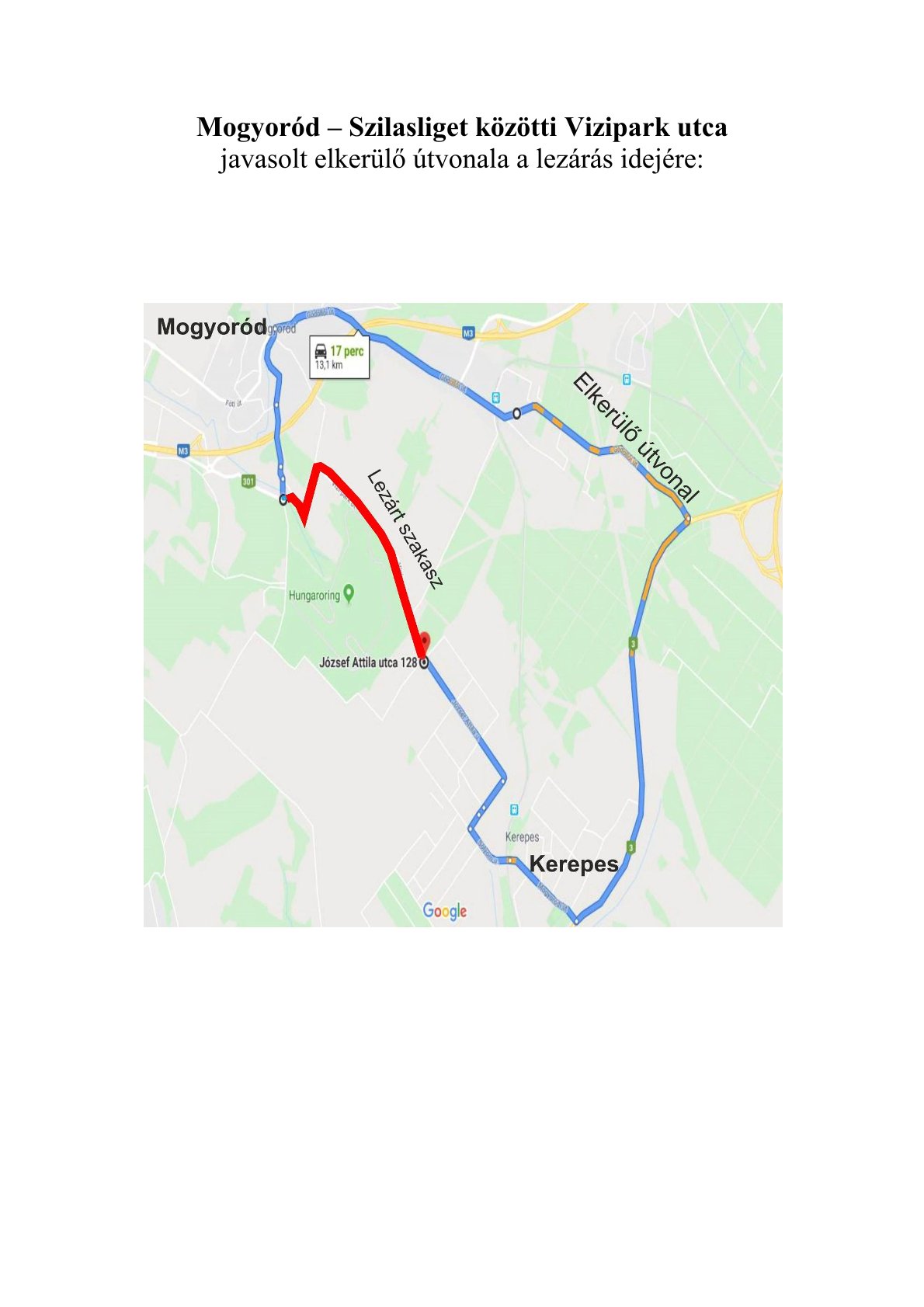 2025.12.29-én 06:30 és 19:00 óra között: Mogyoród és Szilasliget közötti Vízipark utca